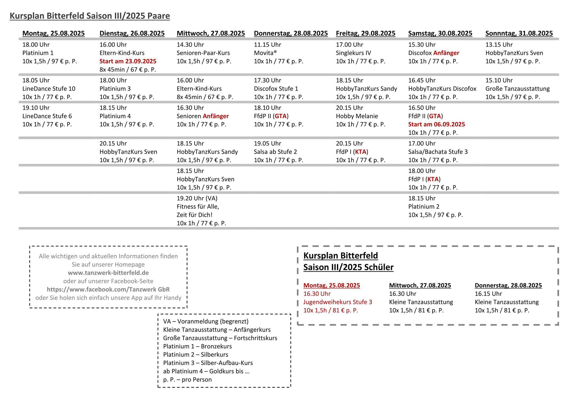 Unser Kursplan ab September