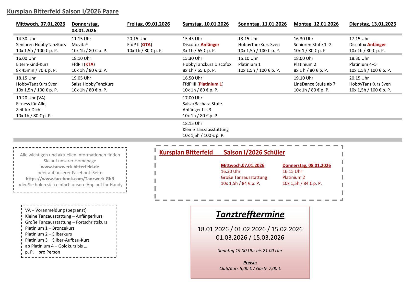 unsere neue Saison startet ab Mittwoch, 07.01.2026.
